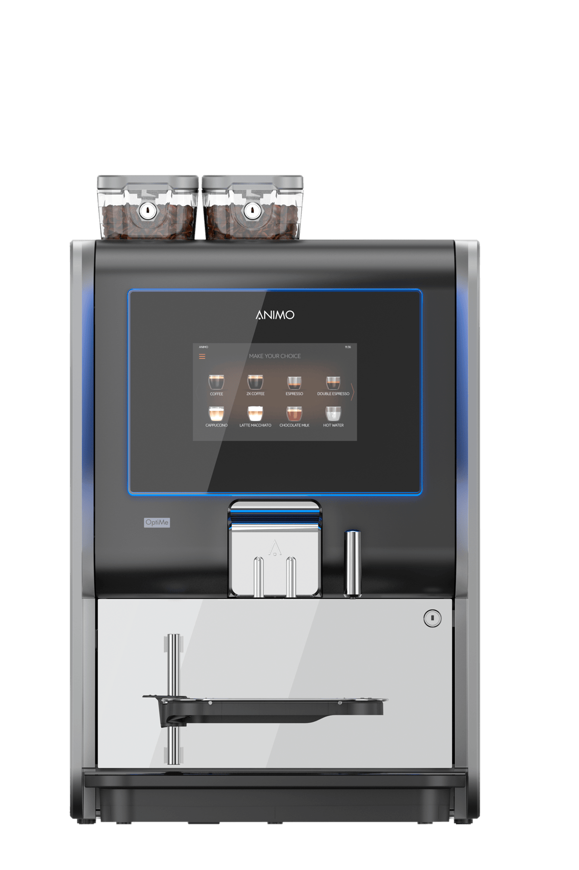 Koffieoptieskoffie, espresso, cappuccino, chocolademelk, wiener melange, latte machiato, heet water